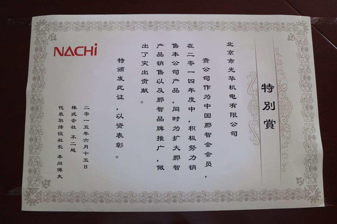 隨著中國(guó)工業(yè)智能化發(fā)展,我司利用自身客戶(hù)資源,自2014年起,全面代理日本株式會(huì)社不二越 NACHI品牌:液壓設(shè)備、切削刀具、工業(yè)機(jī)器人等產(chǎn)品。成為NACHI 品牌綜合代理商,促使光華機(jī)電向多元化產(chǎn)品結(jié)構(gòu)發(fā)展。